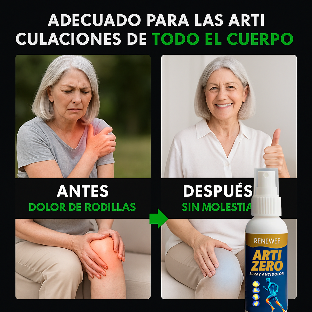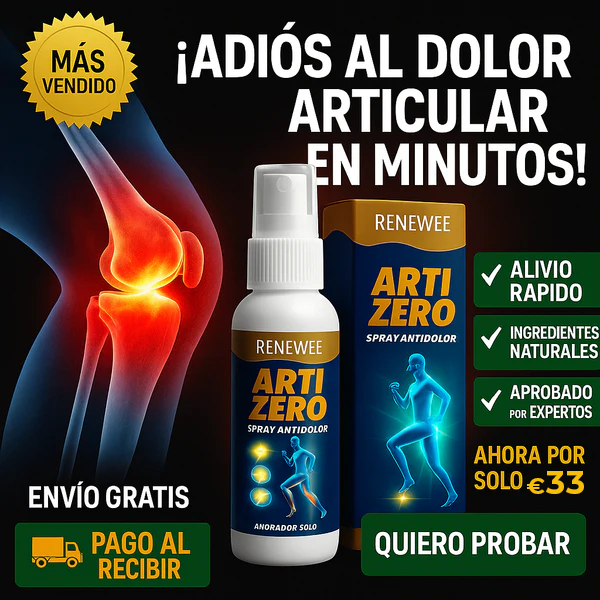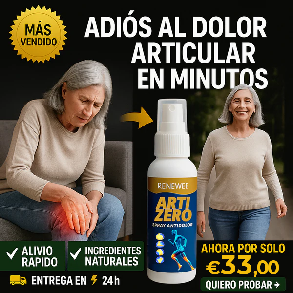 Te recomiendo el Spray de Recuperación Articular ArtiZero™ aliviar el dolor y restaurar la movilidad de tus articulaciones de forma rápida y natural. Su fórmula especializada ofrece resultados rápidos y duraderos, con ingredientes de alta calidad que aseguran una aplicación segura.