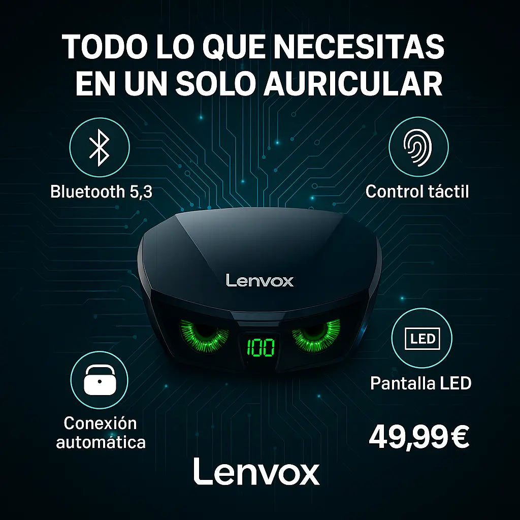 Auriculares Inalámbricos Lenvox GM2 Pro con Pantalla LED + 1 año de Spotify Premium Gratis