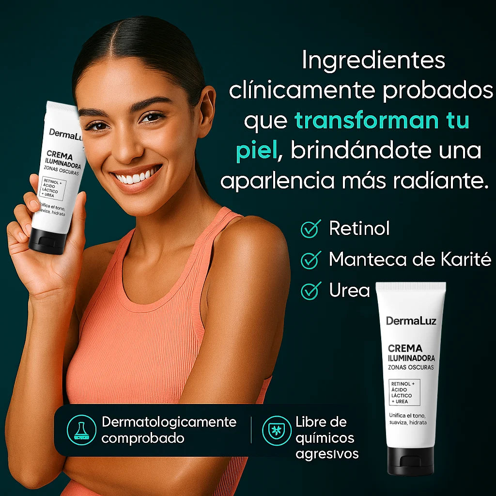 🔥 Aclara zonas oscuras (axilas, cuello, codos, rodillas y nudillos) con DermaLuz™.
