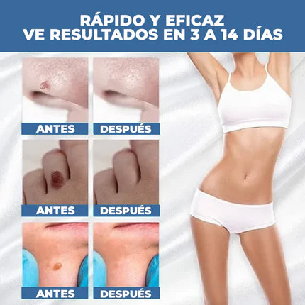 - ✔️ Eliminar por completo las verrugas, tratar las manchas y eliminar todo tipo de imperfecciones en la piel.