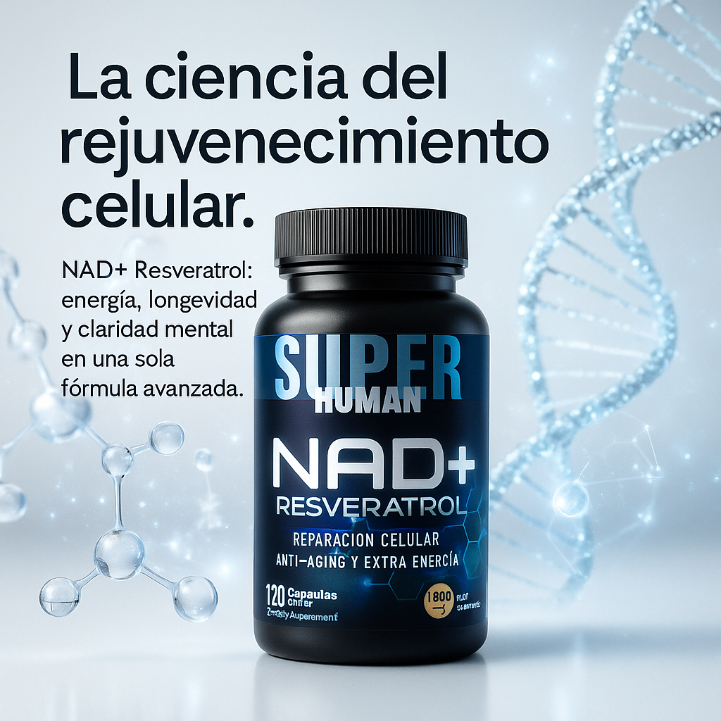 Potencia tu energía celular y promueve la longevidad con cada dosis. Esta fórmula avanzada combina NAD+ y Resveratrol para combatir la fatiga y proteger tus células contra el envejecimiento, ayudándote a sentirte joven y revitalizado.