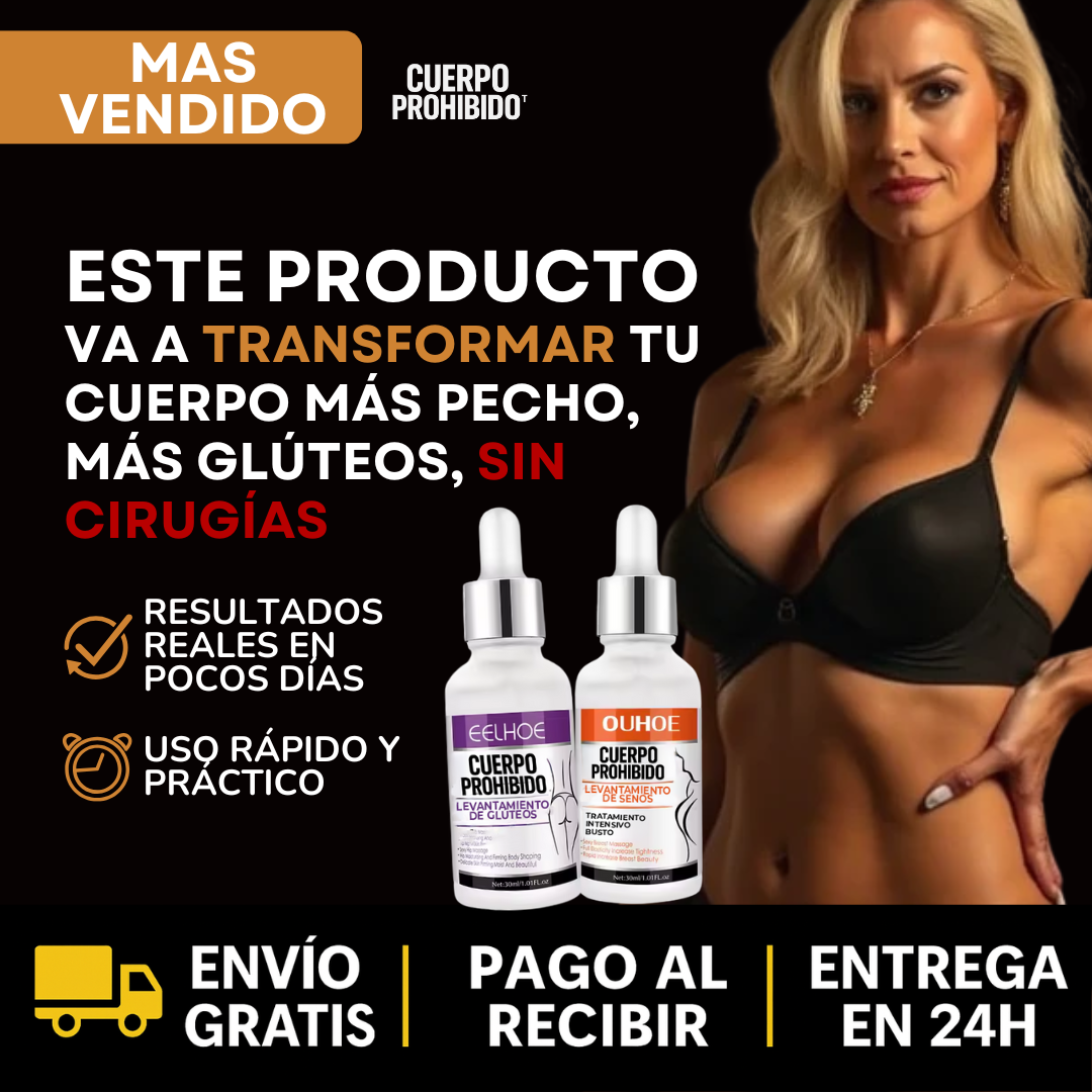 Con una combinación de extractos naturales y tecnología de absorción profunda, Cuerpo Prohibido™ estimula el aumento del busto de forma segura y progresiva. Mejora la firmeza, levanta visiblemente los senos y combate la flacidez, dejando una piel más tersa y un escote más definido. Su aplicación es rápida, sencilla y sin efectos secundarios, ideal para mujeres que desean sentirse más atractivas y seguras.